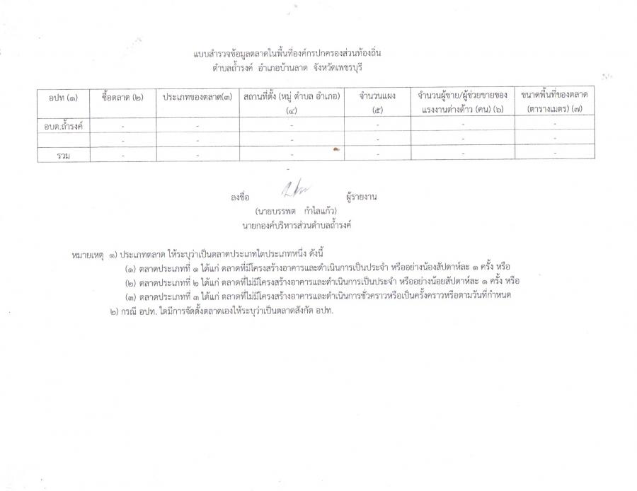 แบบสำรวจข้อมูลตลาดในเขตพื้นที่องค์กรปกครองส่วนท้องถิ่น องค์การบริหารส่วนตำบลถ้ำรงค์ ประจำปีงบประมาณ 2567