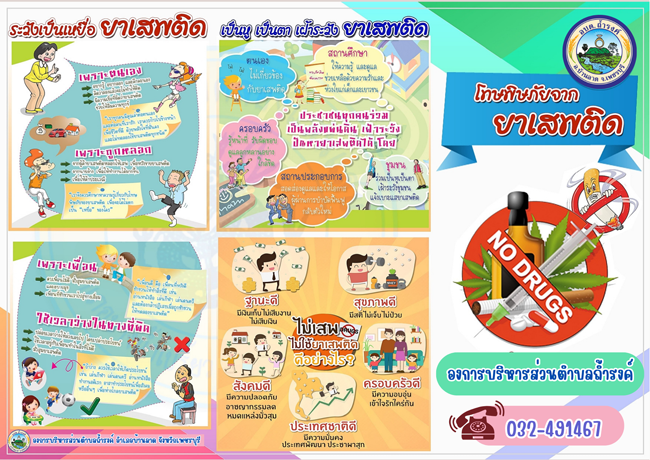 แผ่นพับ รณรงค์ประชาสัมพันธ์ เพื่อสร้างการเรียนรู้เกี่ยวกับโทษพิษภัยจากยาเสพติด เนื่องในวันต่อต้านยาเสพติดโลก (26 มิถุนายน)